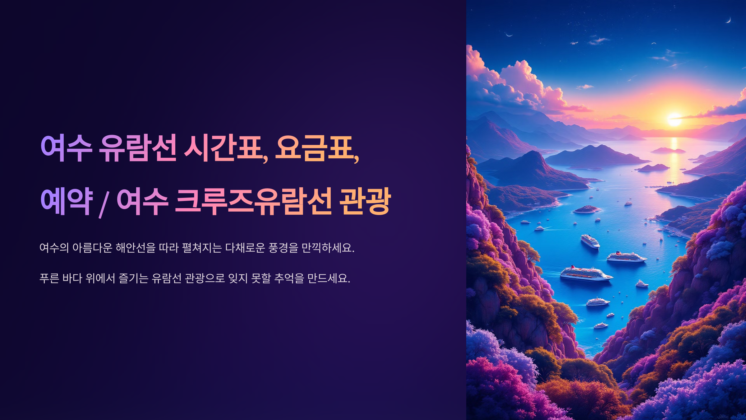 여수의 아름다운 해안선을 따라 펼쳐지는 다채로운 풍경을 만끽하고 싶으신가요? 푸른 바다 위에서 즐기는 여수 유람선 관광은 잊지 못할 추억을 선사할 것입니다. 이 글에서는 여수 유람선의 시간표, 요금, 그리고 예약 방법에 대한 모든 정보를 자세히 안내해 드립니다.