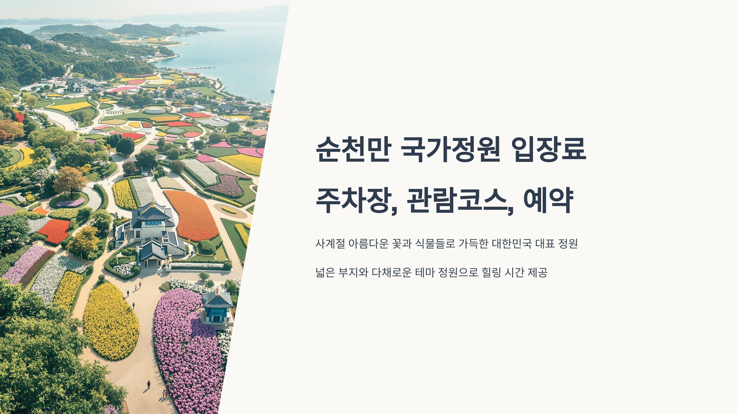 봄, 여름, 가을, 겨울 사계절 아름다운 꽃과 식물들로 가득한 순천만 국가정원은 대한민국을 대표하는 정원입니다. 넓은 부지와 다채로운 테마 정원, 아름다운 자연 경관은 방문객들에게 잊지 못할 힐링의 시간을 선사합니다. 가족, 연인, 친구와 함께 혹은 혼자서도 충분히 즐길 수 있는 순천만 국가정원의 매력을 파헤쳐 볼까요? 입장료, 주차 정보, 추천 관람 코스, 그리고 예약 방법까지, 방문 전에 알아두면 좋을 모든 정보를 상세하게 안내해 드립니다.