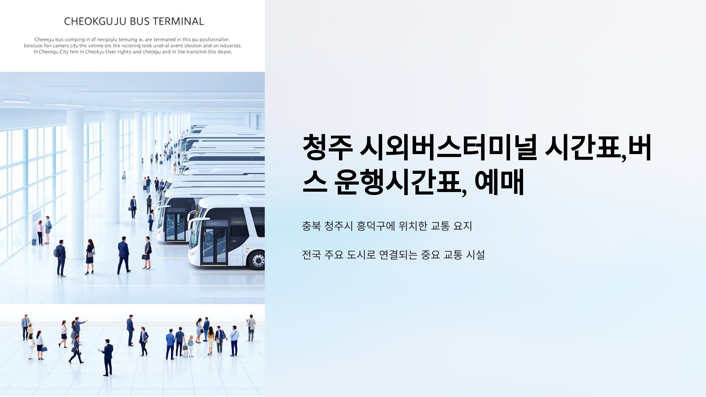특히 주말이나 공휴일, 성수기에는 버스 시간표와 예매 정보를 미리 알아두는 것이 중요합니다. 이번 글에서는 청주 시외버스터미널의 최신 버스 운행시간표, 예매 방법, 노선 정보, 그리고 자주 묻는 질문까지 한눈에 정리해드립니다.